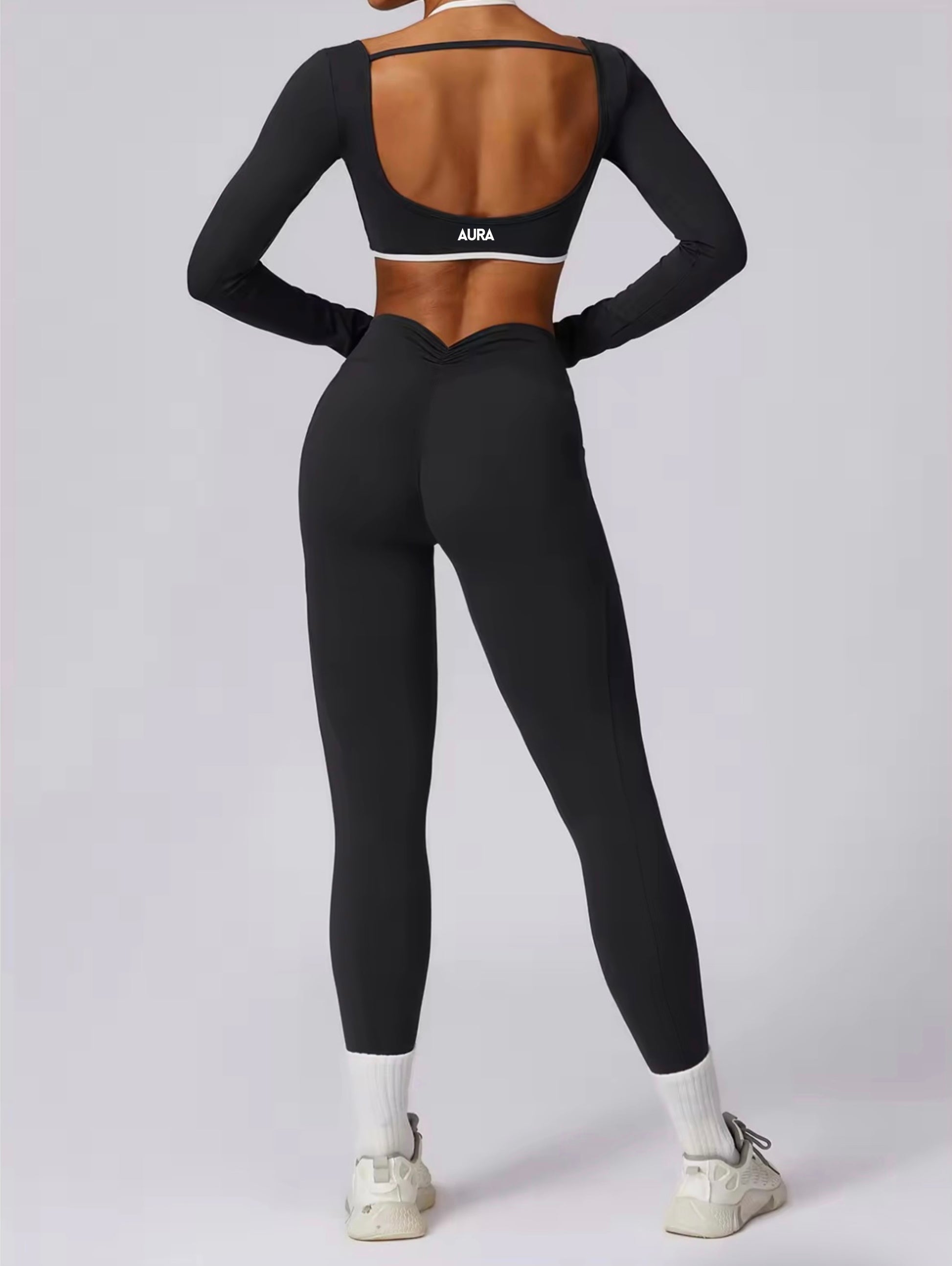 Az AURA DIVINE LONG fekete szett tökéletes választás súlyzós edzéshez, jógához, futáshoz vagy egyszerűen az aktív hétköznapokra.