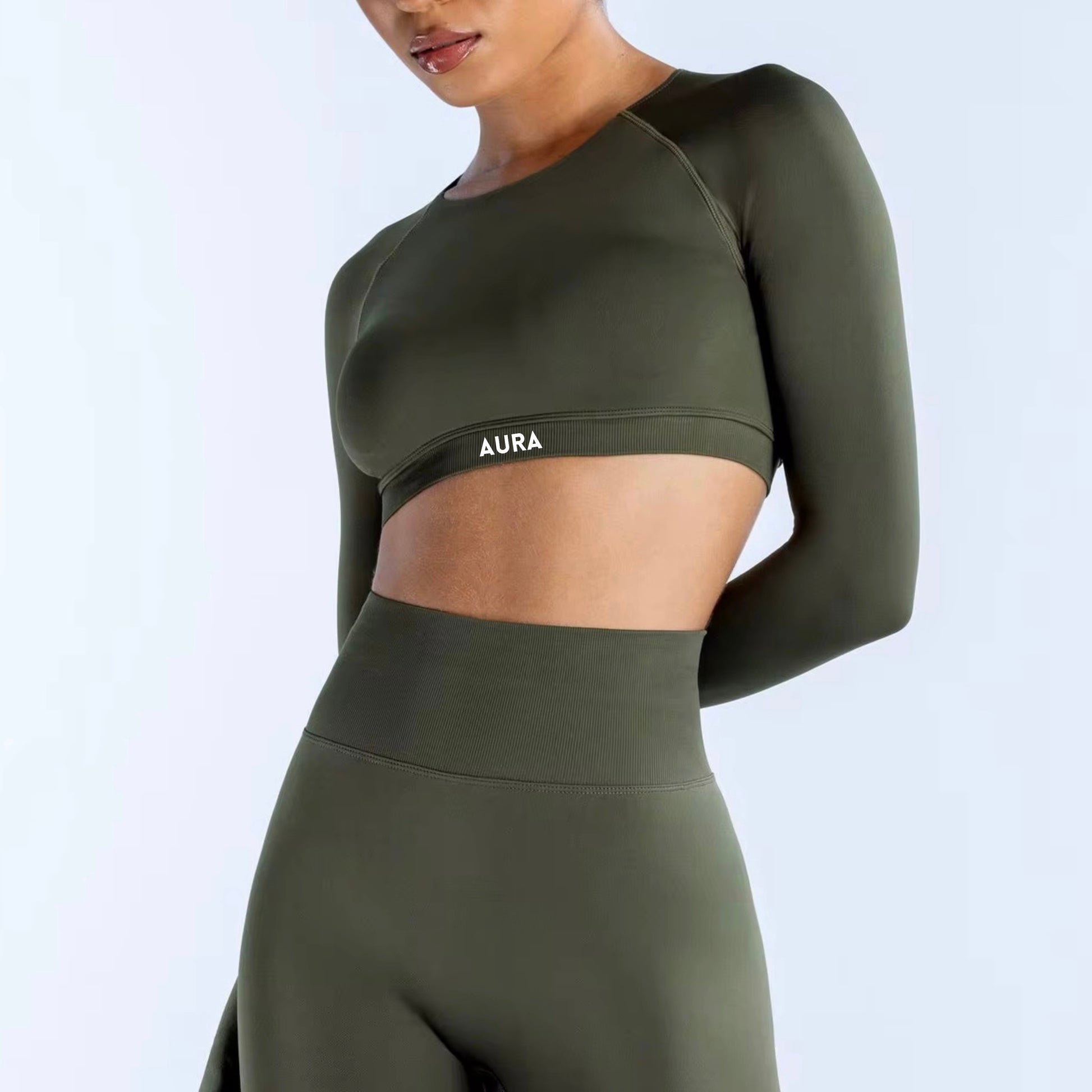 Az AURA SKIN olívazöld edzősszett a nőies magabiztosság új szintjét hozza el. Tökéletes választás súlyzós edzéshez, jógához, futáshoz, vagy bármilyen aktív naphoz.