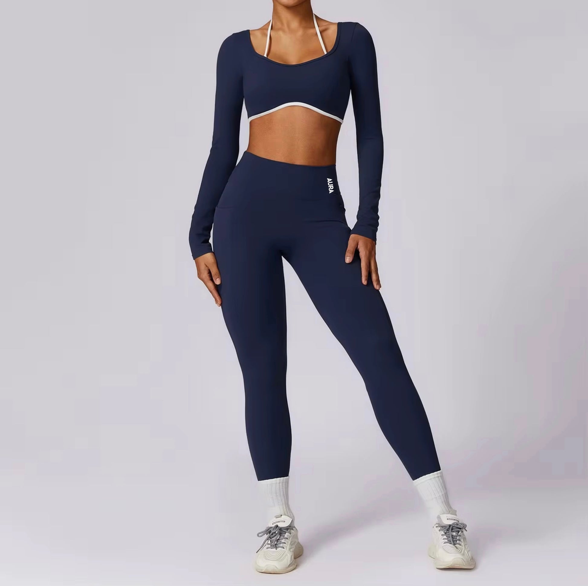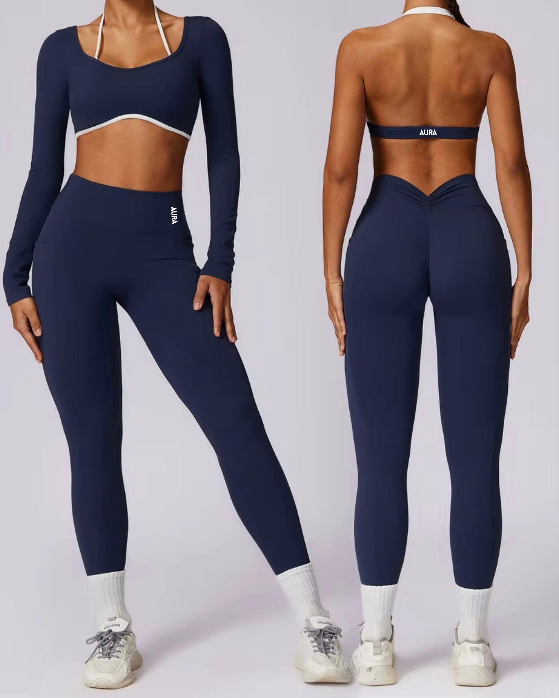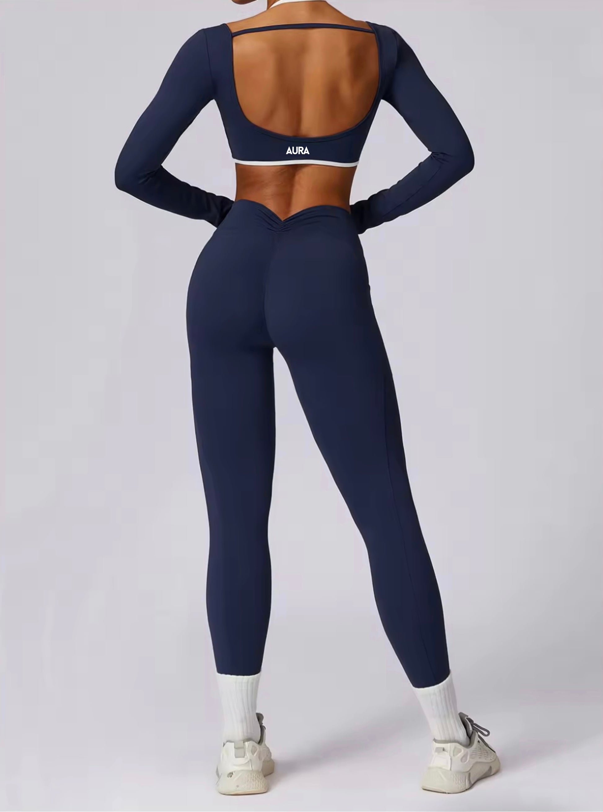 Az AURA DIVINE LONG kék szett tökéletes választás súlyzós edzéshez, jógához, futáshoz vagy egyszerűen az aktív hétköznapokra.